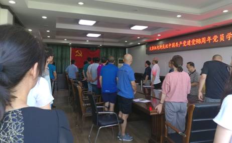 会议以入会党员同唱国歌开始,会上传达了《中共中央关于印发<习近平新时代中国特色社会主义思想学习纲要>的通知》,陈服军书记做了建党98周年纪念讲话,并传达了中国水科院关于召开“不忘初心、牢记使命”主题教育活动的精神和要求,表扬了在我所转型创造方面做出突出贡献的李万平、李超、马智杰、雷亮等同志。