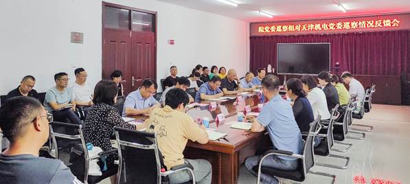 2023年8月4日,院党委巡察组向天津机电党委反馈了巡察情况。院纪委书记、巡察工作领导小组副组长宋树芳参加会议,并对巡察整改提出要求。院党委巡察组组长张莹反馈巡察意见。天津机电党委书记、所长张金接主持会议并就落实巡察整改作表态发言。