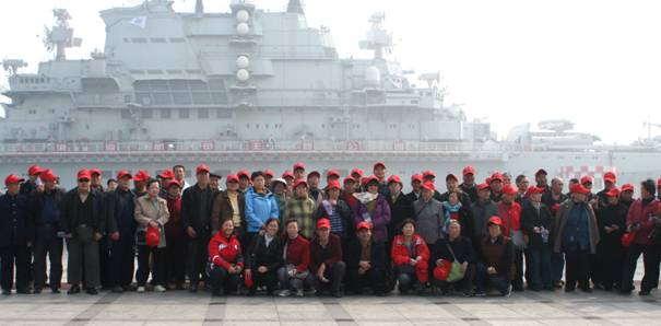 离退休职工自豪祖国的强大,纷纷兴高采烈地登上“基辅”号航母,兴致勃勃地听导游介绍航母故事,饶有兴致地了解航母的参数和性能,脸上无不浮现出兴奋的表情。看到离退休职工兴致勃勃在航母上爬上爬下游览,组织者倍感高兴,默默地祝愿离退休职工身体健康。