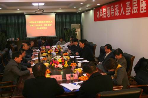 2011年11月21日,中国水科院党委书记、院长匡尚富,院党委副书记陈祥建,副院长贾金生、杨晓东、汪小刚和院各职能部门负责人一行赴天津机电所开展“走出机关、服务基层”主题实践调研活动。天津机电所领导班子成员和中层干部参加了调研座谈会。