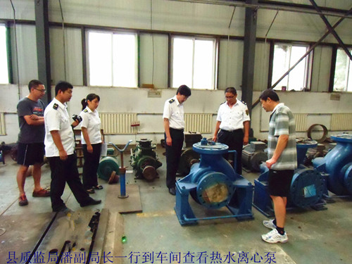 2013年8月27日上午,天津机电所接受了天津蓟县质量技术监督局对我所热水离心泵产品进行的了生产许可证年度实地核查,副局长潘序武亲临我所进行了工作调研,陈服军所长对潘副局长一行的到来表示欢迎。