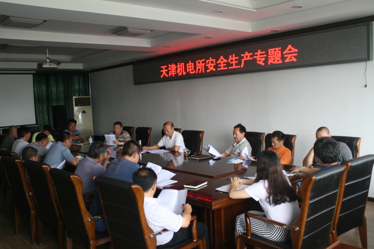 2014年8月5日下午4:00我所在三楼会议室于召开安全生产专题会议,安委会成员、副处级以上干部和部分管理人员参加,会议由办公室主任主持。