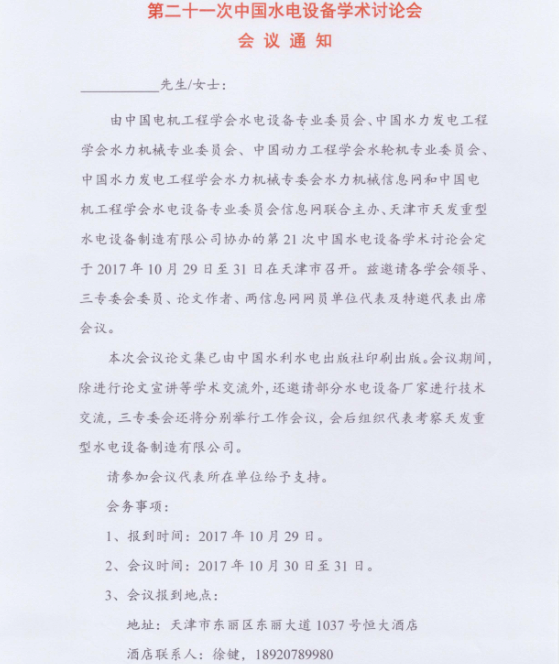 第二十一次中国水电设备学术讨论会通知