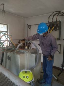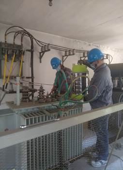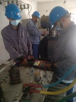 试验人员严格按照电力安全规程的要求,先对堆积的灰尘进行了除尘清扫,对电气设备的所有端子接头、引线部位进行了检查、紧固工作,然后对变压器的绝缘电阻、直流电阻、工频耐压、介质损耗、变比等试验项目进行试验,随后对高低压开关柜、母线、电缆等电力设备进行测试。