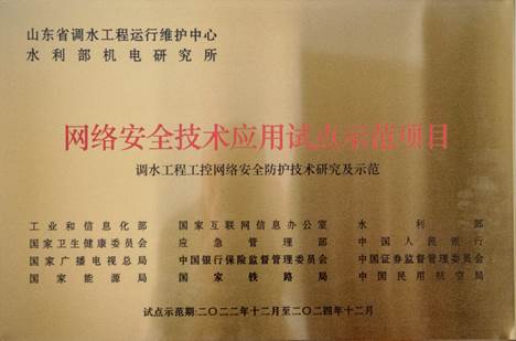 2月23日,2023年中国网络和数据安全产业高峰论坛在四川省成都市成功举办。会上工业和信息化部、水利部、中央网信办等十二部委领导代表,正式为入选“2022年网络安全技术应用试点示范项目”的单位代表授牌。水利部机电研究所与山东省调水工程运行维护中心共同承担的“调水工程网络安全防护技术研究及示范”科研课题列入应用试点示范名单。