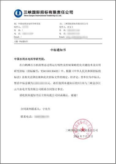 此次中标该项目充分表明了白鹤滩水电站对我所实力和专业的认可,我所将继续秉持技术创新和服务至上的理念,不断提升产品质量和服务水平,切实履行合同要求,有序开展项目实施。