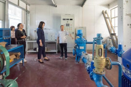 韩毅新一行实地考察了我所生产车间、流体实验室、水力机械控制试验室等场所,现场参观了超声流量计、拖车式移动泵、超声波智能水表等多款自主研发产品。
