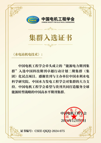 2024年12月,《水电站机电技术》期刊加入中国电机工程学会牵头成立的“能源电力期刊集群”,并入选中国科技期刊卓越行动计划二期集群(集团)化试点项目。