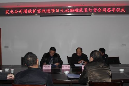 2011年的最后一个月,天津机电所市场经营工作再传捷报:12月28日,在重庆市江津区水力发电有限公司会议室举行了江津水力发电有限公司增效扩容改造项目九电站励磁装置订货签字仪式,江津水力发电有限公司董事长兼总经理肖天权和天津水利电力机电研究所控制技术事业部销售副主任王占清分别代表业主和厂家签署了订货合同,这标志着天津机电所在农村水电增效扩容市场上迈出了坚实的第一步,为争取来年更大的改造市场份额打下了良好的基础。