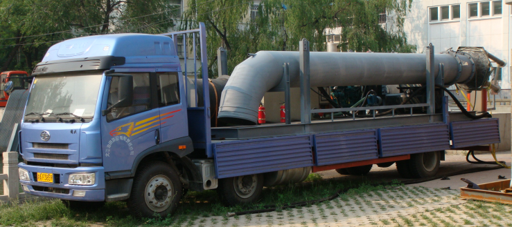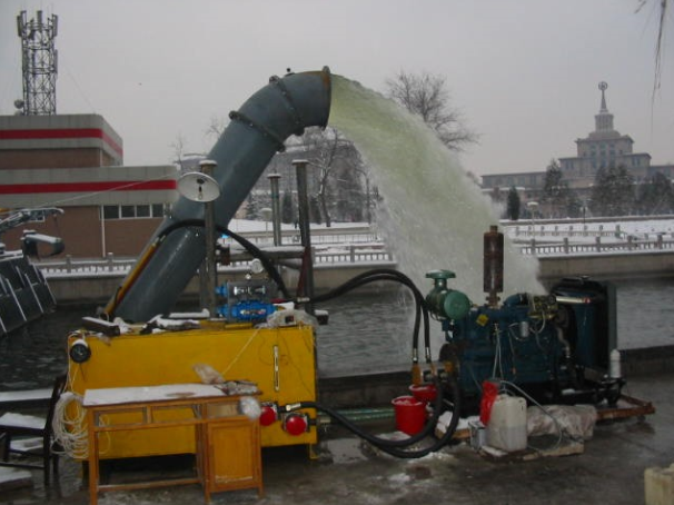 移动泵站系统产品由轴流水泵、柴油机、液压泵、液压马达、液压传动管、液压站、输水软管、专用底盘等组成,水泵单独一体,其它装置配置在一个专用底盘上,安装使用时,只需快速连接液压管即可迅速使用,而泵可以根据需要以多种形式放置。