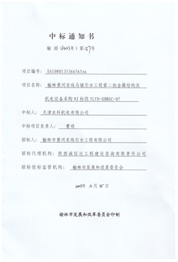 我所成功中标榆林黄河东线马镇引水工程第二批金属结构及机电设备采购N2标段项目